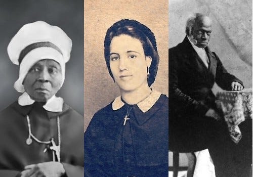 The six are Venerable Pierre Toussaint (1776-1853), Venerable Mother Mary Elizabeth Lange (1784-1882), Venerable Henriette Delille (1813-1862), Venerable Fr. Augustus Tolton (1854-1897), Servant of God Julia Greeley (1833 and 1848-1918), Servant of God Sr. Thea Bowman, FSPA (1937-1990) and Servant of God Friar Martin Maria de Porres Ward. Pictured above: Mary Elizabeth Lange, Harriet Delille, Pierre Toussaint.